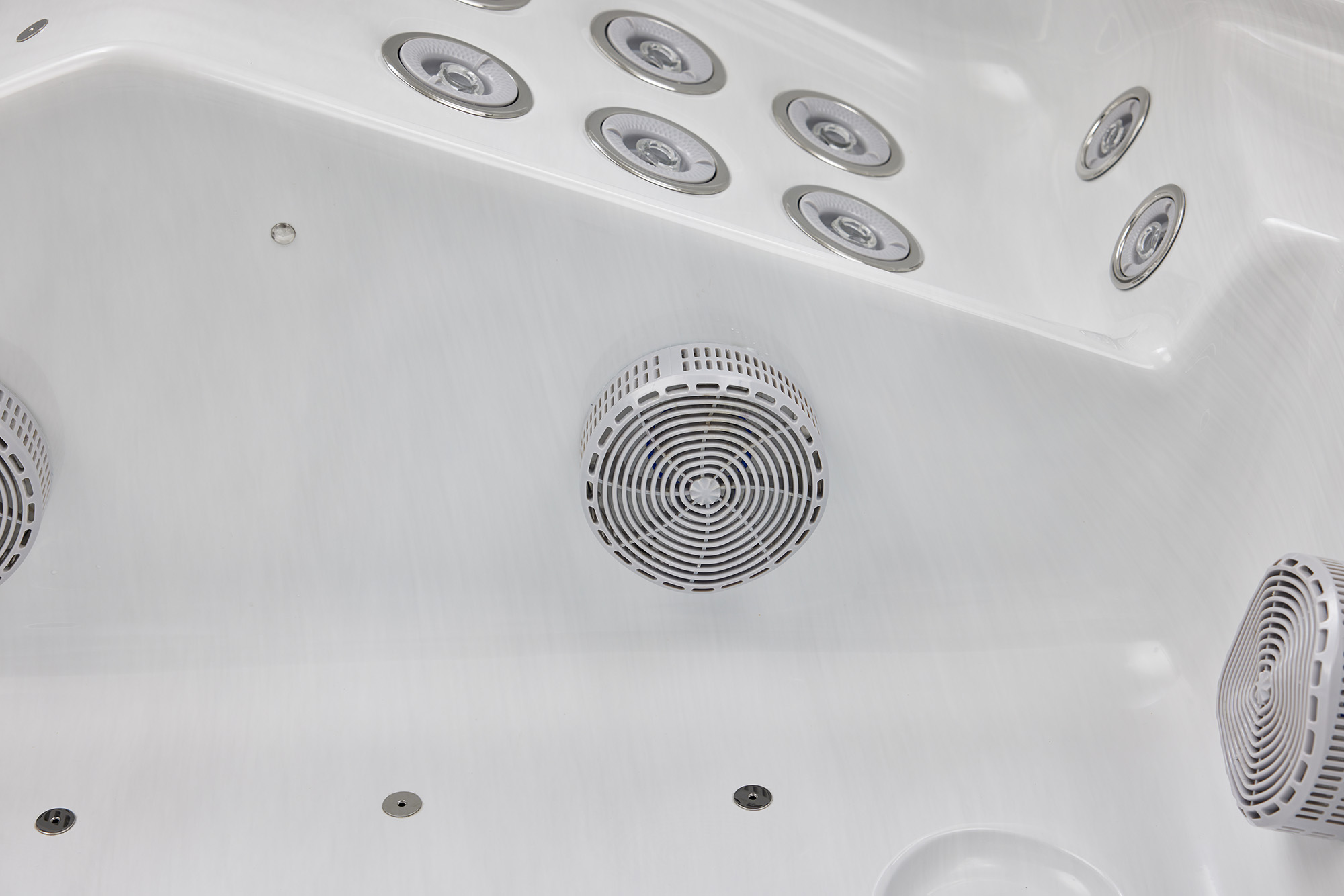 Струи воздуха и воды способствуют улучшению качества массажа и хорошему кровообращению благодаря форсункам.