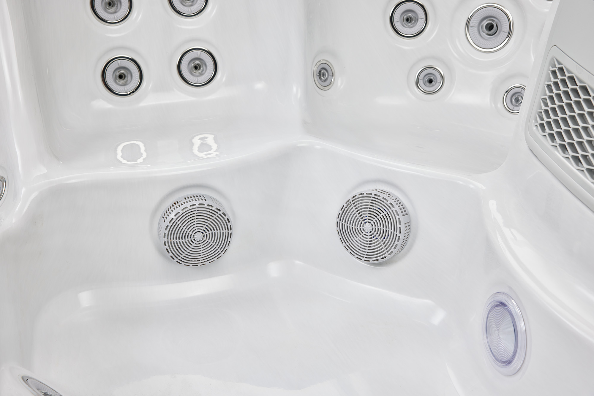 Струи воздуха и воды способствуют улучшению качества массажа и хорошему кровообращению благодаря форсункам.