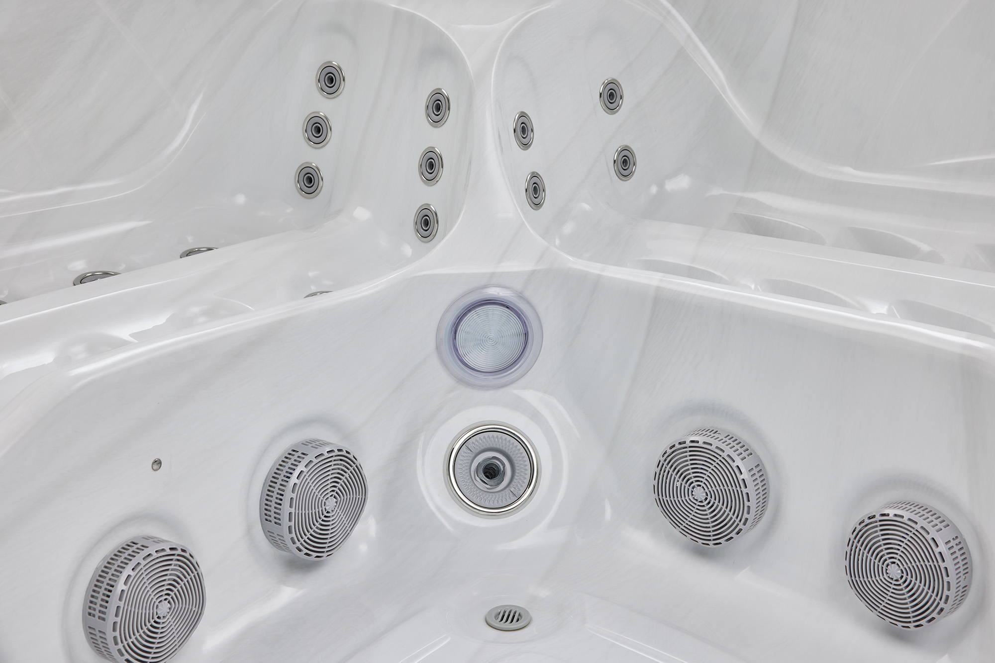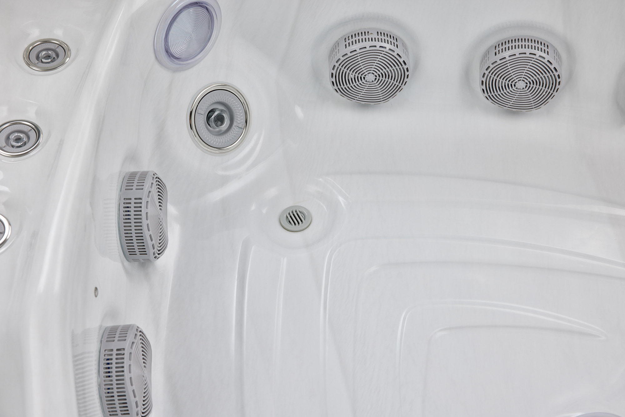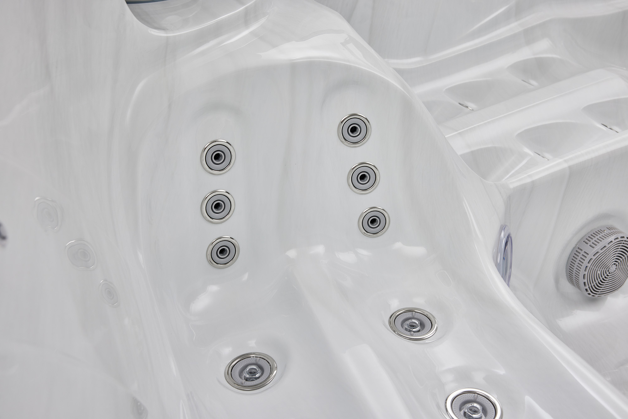 Струи воздуха и воды способствуют улучшению качества массажа и хорошему кровообращению благодаря форсункам.