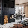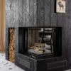 Отсутствие стойки рамки между стеклами создает прекрасный вид на огонь из любой точки помещения и смотрится единым целым.