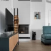 Отсутствие стойки рамки между стеклами создает прекрасный вид на огонь из любой точки помещения и смотрится единым целым.