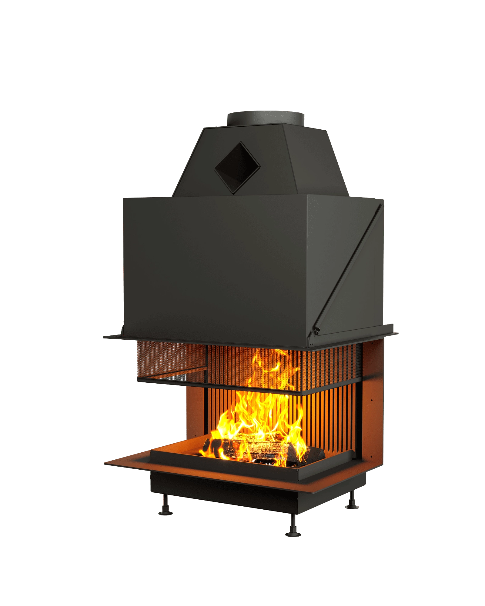 Защитная сетка, выполненная в виде сот — разработка Астов, имеет высокий угол обзора на пламя. Такое решение удобно тем, что даже в закрытом состоянии не теряются ощущения от открытого огня.