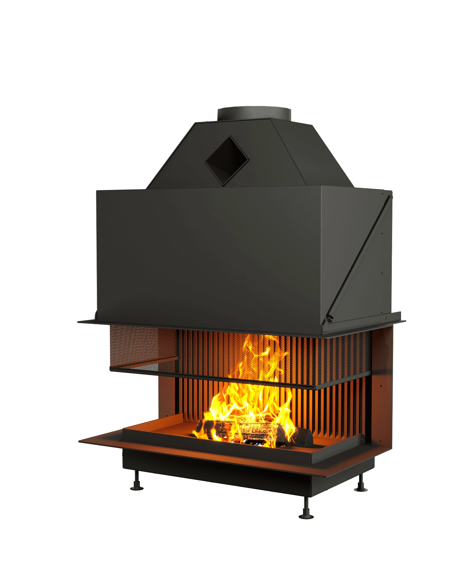 Защитная сетка, выполненная в виде сот — разработка Астов, имеет высокий угол обзора на пламя. Такое решение удобно тем, что даже в закрытом состоянии не теряются ощущения от открытого огня.